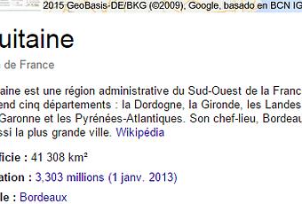 Comme on peut le voir en plus des informations Wikipedia sur le haut du Graphe, les lieux d’intérêt de l'Aquitaine sont affichés en bas du bloc Knowledge Graphe. Comment sont-ils sélectionnés? Entre le château de Commarque et la Dune du Pilat, la différence en terme de visiteurs est "sensible". Il semble que la présence d'une page Google Plus active participe beaucoup au positionnement du lieu d'intérêt...