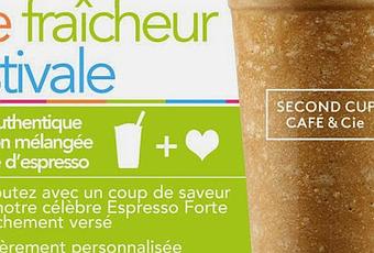 « Notre boisson Frappé est unique, car elle commence par un coup de saveur de notre célèbre Espresso Forte, ce qui garde l’intensité et la saveur du café », affirme Vanda Provato, vice-présidente, Marketing & catégorie, Second Cup Café et CieMC « Nous sommes restés fidèles à notre passion pour la qualité supérieure en vue d’assurer que l’authentique saveur d’espresso ne soit pas masquée par le lait, la crème fouettée ou toute saveur ajoutée. »