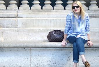 Bon j'avais prévu de vous faire un article beauté hier et puis des petits imprévus... mais je reviens aujourd'hui avec ma seconde tenue parisienne. Encore du confort, un boyfriend jean, des mocassins et une chemise à rayures bleues. Un vrai coup de coeur pour cette chemise que j'ai shoppé il y a quelques jours, une coupe un brin oversize juste parfaite pour être à l'aise.