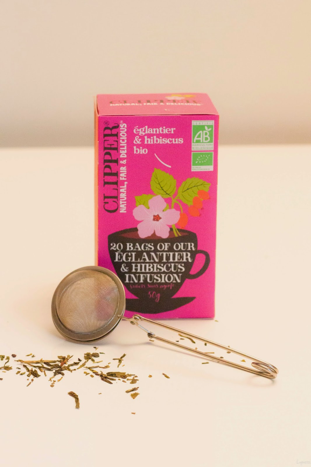 Infusion Clipper Eglantier et Hibiscus bio :Pour le coup ici le gingembre est bien présent! Est-ce le miracle du thé en vrac? Je pense que oui d'une part et que Kusmi Tea propose vraiment des thés d'une qualité inégalable! Seul hic le prix que je ne trouve pas à la portée de toutes les bourses ou d'une consommation régulière!