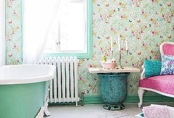 Si vous cherchiez une maison joyeuse, je crois que je l'ai trouvée ! J'ai craqué pour cette vieille maison en bois finlandaise et son univers décalé ! Dans chaque pièce, on trouve de sublimes papiers-peints fleuris qui se déclinent de toutes les couleurs ! De la couleur justement, et bien ici on y va allègrement et ça fonctionne ! J'adore l'association mint et rose de la salle de bain ! Super aussi le meuble de salle de bain suspendu, c'est pratique pour le ménage ;-) Bref, une visite qui me met d'humeur joyeuse, et j'espère que vous aussi ! Belle journée à tous ! xoxo Photos : Talo & Koti