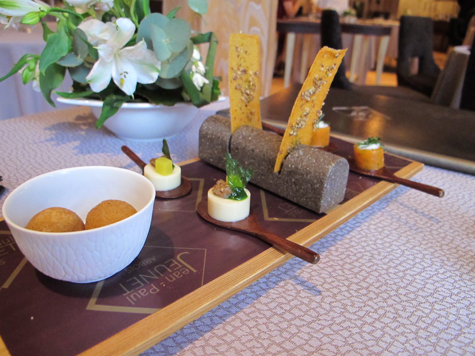 Après deux essais non transformés pour des raisons indépendantes de notre volonté, la tentation était grande de tester une table étoilée de renom. Étant faible de caractère, nous n'avons pas pu résister et nous voilà chez Jean Paul Jeunet.