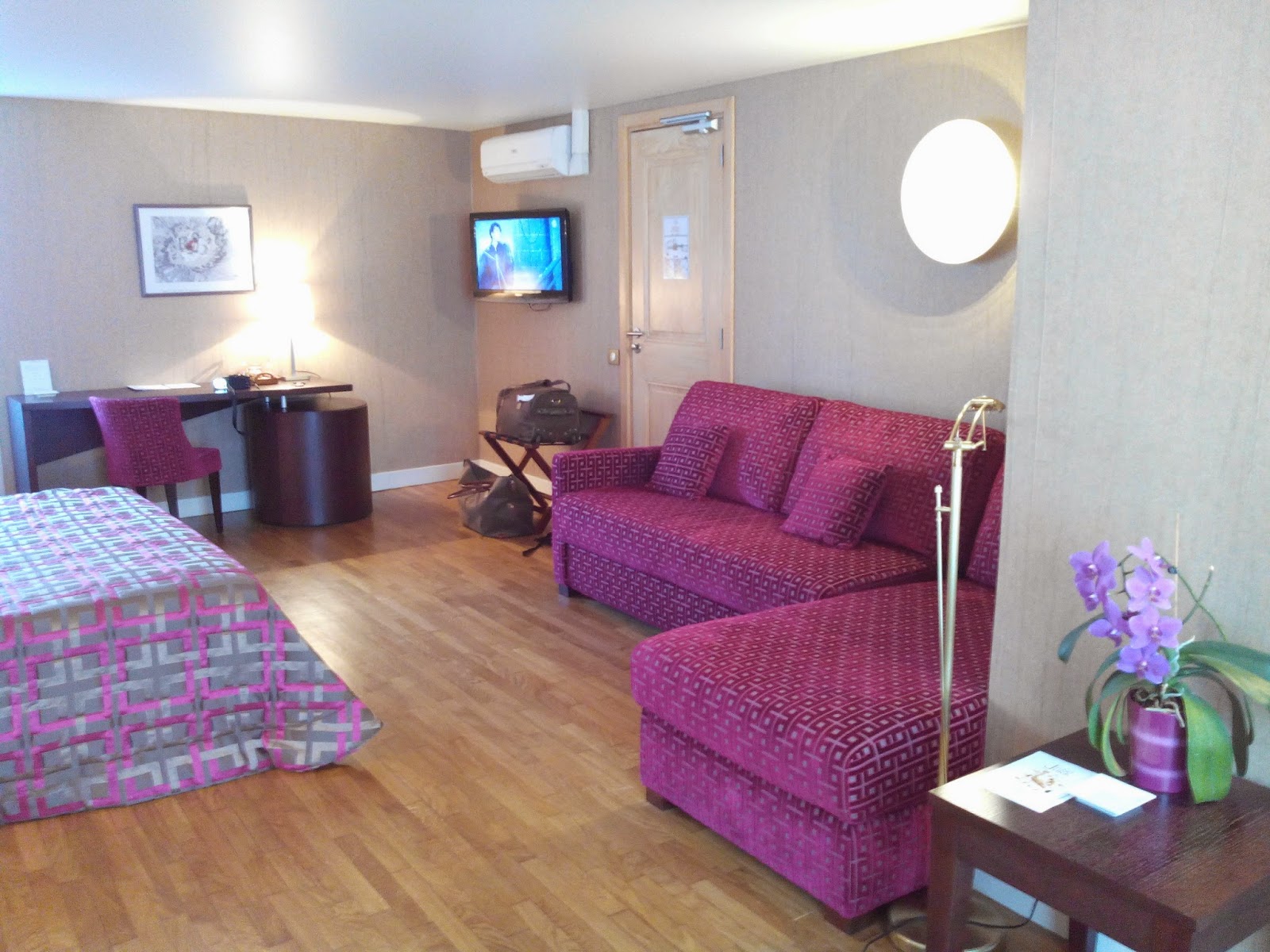 Faisons d'abord connaissance avec notre chambre. Que dis-je chambre ? Plutôt une suite tant l'espace y parait immense, tellement la chaleur du mobilier et de la décoration nous transporte dans l'univers des palaces ...