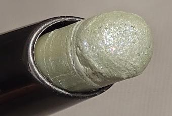Un vert olive bien opaque en un seul passage, qui laisse place à une ombre presque translucide mais étincelante et qui vire au vert aqua lorsqu'on l'estompe, grâce à ses fines paillettes bleutées j'ai adoré et ne pouvais pas repartir sans elle ! (y en a bien une qui me comprend hein ?!)