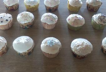 Etaler le glaçage sur les cup cakes ou sur le/ les gâteau(x). Attention : il va couler un peu. Donc laisser un peu de marge avant les bords ;)