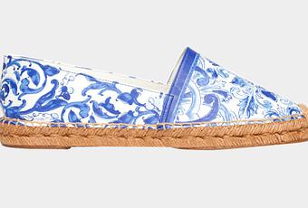 Pour l’été 2015, Domenico Dolce & Stefano Gabbana ont sublimé le fameux soulier basque L’espadrille est orné de volutes bleues inspirées des céramiques traditionnelles italiennes.