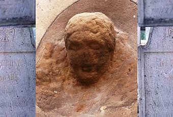 Mais avant de parler des deux tombes, voyons déjà la tête de l'homme (cap de l'hom en occitan) une sculpture étrange que l'abbé Boudet avait reçue en cadeau. Cette sculpture détachée d'un menhir Celtes provenant d'un amas de roches au dessus de Rennes le Château est aujourd'hui gardée dans un petit musée.