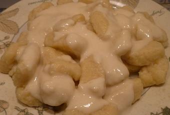 Epluchez les pommes de terre et faites-les cuire à la vapeur pendant 10 minutes environ, afin qu’elles soient tendres. Une fois les pommes de terre cuites, réduisez-les en purée, incorporez-y l’oeuf et ajoutez petit à petit la farine afin d’obtenir une boule non collante. Salez et poivrez à convenance.
