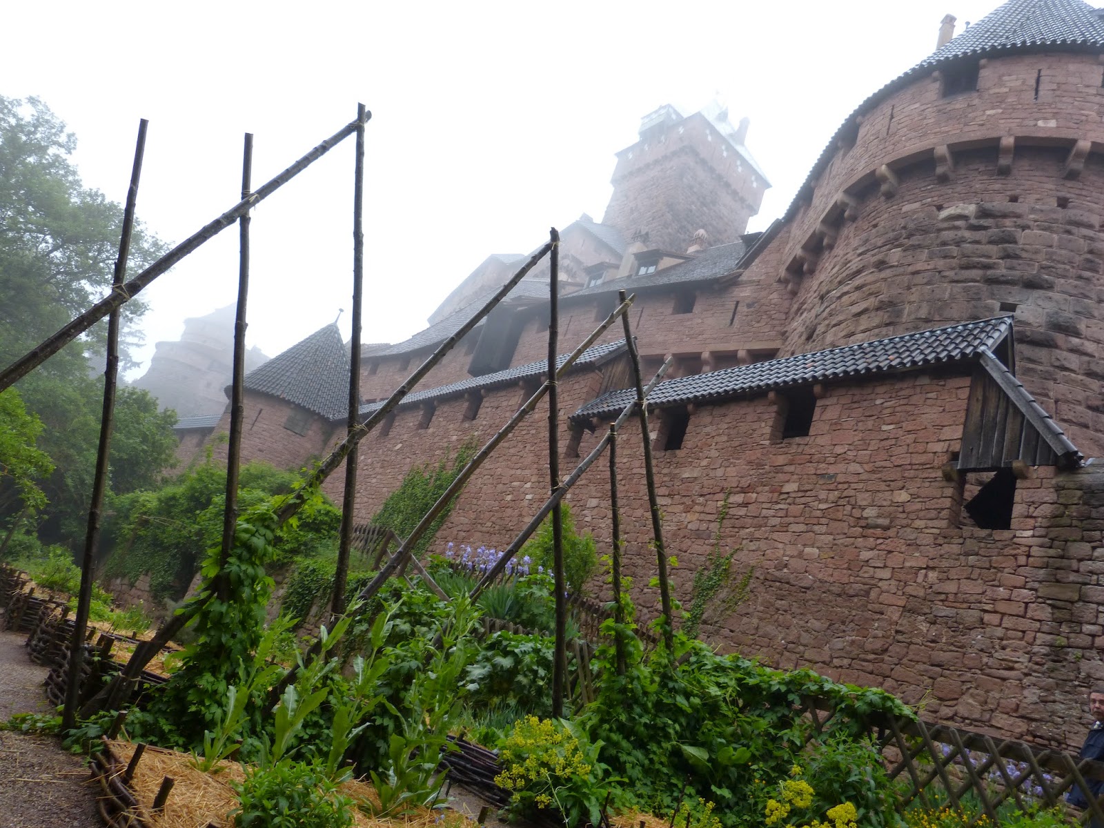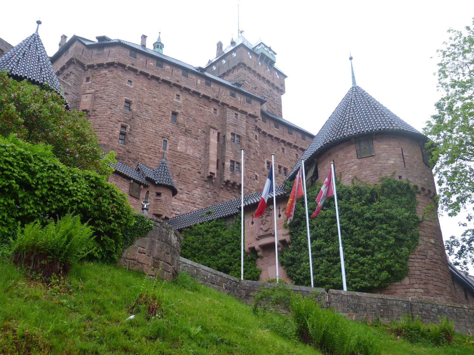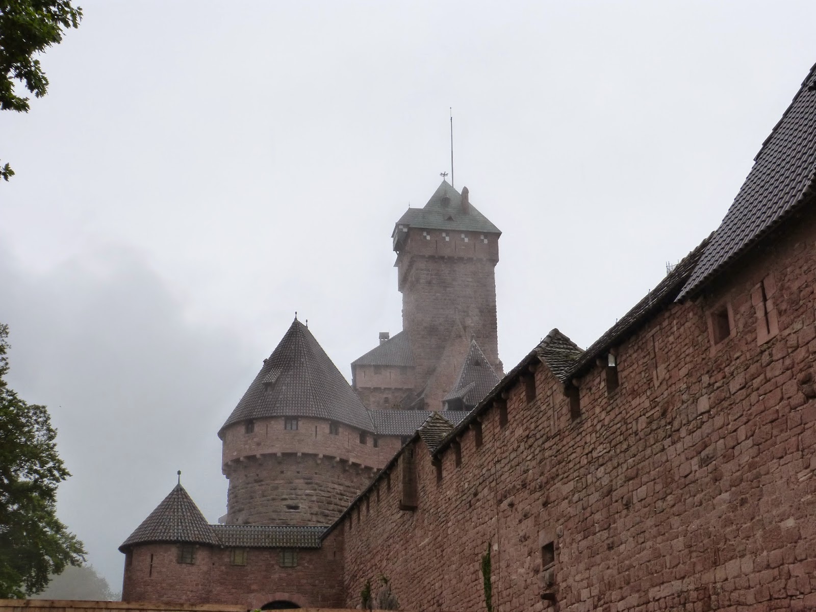 Aller en Alsace sans aller visiter le château de Haut Koenigsbourg est une hérésie. Perché sur les hauteurs, celui-ci a été entièrement reconstitué sous Guillaume II et présente un merveilleux exemple de l'architecture du haut Moyen-Age. Splendeur de la région, ce château est une pièce d'une série de fortifications qu'on observe partout dans les hauteurs des Vosges. Bordant les vignes, nous sommes allés le visiter au matin pour éviter l'affluence des touristes, fort nombreux. Hélas pour nous, le temps était pluvieux, les nuages bas. Mais ça nous a permis de prendre une série de photos plutôt pas mal, dont je vous délivre quelques extraits ci-dessous: