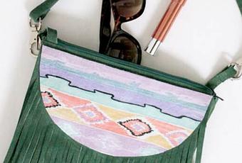 Voici un superbe sac à franges que vous pourrez customiser et personnaliser à l'infini ! Utilisez vos chutes de suédine ou de faux cuir pour confectionner ce sac en bandoulière. Le sac en lui-même n'est pas très compliquée puisqu'il s'agit ni plus ni moins que d'une pochette rectangulaire. Mais vous verrez dans le tutoriel comment coudre une bandoulière avec des crochets métalliques et des anneaux en D ainsi que comment rajouter les franges pour un effet très pro et très réussi.