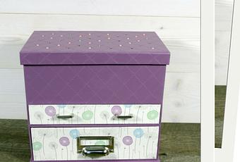 Cette boite regorge d’idées de rangement et d’utilisations diverses. Vous pouvez l’utiliser pour ranger votre matériel de cartonnage ou de scrapbooking, mais elle peut aussi trouver sa place dans une chambre d’enfants, dans une salle de bain, dans votre bureau. Vous pouvez découvrir différentes mises en situation dans le catalogue spécial Boite à bricole.