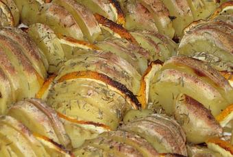J'ai ENCORE trouvé cette délicieuse recette chez La Tendresse en cuisine. J'ai volontairement coupé mes rondelles de pommes de terre plus fines qu'elle ne le recommandait pour diminuer le temps de cuisson. Le citron parfume beaucoup les pommes de terre, libre à vous de le manger ou non.
