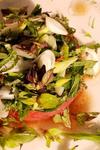 Emincez assez fin le basilic thaï, la menthe et la ciboule. Emincez le plus fin possible le piment oiseau.