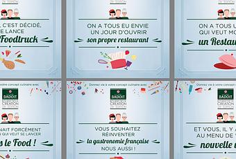 Pour partager l’information auprès de nos proches, l’agence Geek and Food a imaginé des punchlines avec Graphilicious sous forme de 6 cartes virtuelles à diffuser sur les réseaux sociaux… parce qu’on a tous un ami qui veut monter son restaurant !