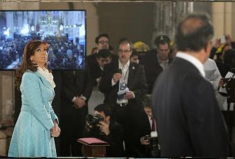 De toute évidence, il n'y a pas eu d'exploitation électoraliste de la part de Cristina qui a réservé au meeting (1) de la soirée (2), de retour dans la capitale fédérale, son discours politique où elle a répété une idée forte de sa politique depuis huit ans : le projet pour le pays n'est pas celui d'une personne mais d'un peuple. Elle a renvoyé les citoyens à leurs responsabilités civiques de participer chacun pour sa part au développement du pays et à ses progrès de justice sociale. Tous les célébrants des Te Deum partout dans le pays ont insisté sur la notion de paix sociale et civique et de lutte contre la corruption et l'enrichissement personnel, sans entrer dans des attaques ciblées contre personne.