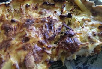 Comment j’ai fait ? J’ai étalé la pâte dans un moule (trop facile!), j’ai fait cuire les poireaux avec l’oignon dans une sauteuse avec un peu de beurre et de l’eau pour que ça compote un peu. J’ai ajouté les deux boîtes de thon. J’ai fouetté les œufs dans un saladier avec un peu de sel / poivre, ajouté une briquette de crème liquide à 4% de MG et deux cuillères à soupe de bonne crème fraîche de Normandie (faut pas déconner non plus) et un peu de gruyère râpé. J’ai piqué là la fourchette puis garni ma pâte avec le mélange poireaux / thon et j’ai versé le mélange œufs / crème dessus. Une demi-heure au four et on avait de quoi becqueter jusqu’à ce midi !