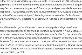 Quid des propositions d'hébergement individualisées ? On se souvient des dernières propositions du genre faites par le préfet : une dispersion des roms du camp des Coquetiers de Bobigny aux quatre coins de la France chez Adoma, partenaire de l'État, qui avait eu tellement de succès qu'ils sont tous revenus en région parisienne... On évoque un gymnase temporaire pour les autres ? Jusqu'à quand ? Dans quelles conditions ? Et... après ?