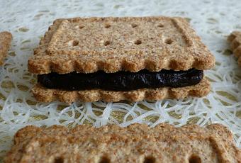 Difficile de croire que ces biscuits fourrés au cacao noir fassent seulement 90kcal.... et qu'ils soient donc, diététiquement corrects !