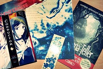 Après avoir marché pas mal de temps (et visiter un Shakespeare and Co complètement blindé...), nous sommes allées vers Châtelet pour faire un tour à L'Ecritoire et Mona Lisait. Là-bas, je ne suis repartie qu'avec ce digne marque-page que vous pouvez voir plus haut et le carnet bleu qui a pour mission d'être un "journal de bord" de mon roman Bleu d'Azur ^_^ (la brochure d' Indiana Teller, c'est Méli qui me l'a donné ! Comme ça, je vais avoir envie de m'acheter le tome 2 XD même si je casse facilement du sucre sur le dos de ce livre !)