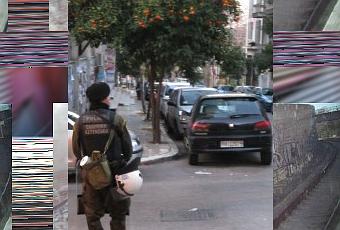 Je me rends au commissariat de Syntagma qui ne paie pas de mine de l'extérieur. Je suis un peu impressionnée. Des jeunes flics sont postés à l'entrée. Plutôt beaux, ils fument, boivent du café. Il n'y aurait pas écrit au-dessus Police, je prendrais le lieu pour l'escalier préféré de la jeunesse dorée ! L'un d'eux me demande ce que je souhaite et m'adresse à un mignon qui parle anglais. Il m'emmène au troisième étage, aussi dénudé que les autres (l'étage !) et me dit très gentiment (ils sont tous gentils dans ce quartier de riches !) d'attendre que la grande blonde pas très souriante (ou presque tous gentils !) se libère. Je surtraduis ses dires les mêlant à mes impressions du moment ! Il ne l'a jamais bien sûr appelée "la grande blonde" ! Une petite vieille attend avec ses cabas éparpillés sur tous les sièges. Un ne suffisait pas ! Aucun disponible pour mon séant, mes panards et ma tête donc.. Je patiente. Elle s'en va. Je m'affale et j'attends. J'attends. J'entends une voix venant du bureau de la blonde. J'imagine qu'elle doit être occupée à recueillir une plainte. Ça me semble au final être plutôt la radio. Deux policiers entrent avec un " prisonnier ", jeune, le teint mat, l'air revêche et rebelle. Ils sont assez agressifs, ne cessent de lui intimer l'ordre de se taire. Le jeune menotté parle beaucoup, il est vrai. Ils reprennent l'ascenseur d'où ils étaient arrivés. Descendant les étages, leurs voix se font encore entendre. La blonde me fait entrer dans son bureau. De la fumée de cigarettes. Ce que je prenais pour une personne déposant une plainte puis la radio est en fait une petite télé qui hoquette une série policière avec pour héroïne... Une blonde !! Du moins est-ce le personnage qui squattera les images tout le tem