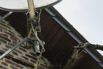 Près de la parabole... des câbles électriques... on y distingue même un morceau de fil de terre (vert et jaune) pour éviter l'électrocution !