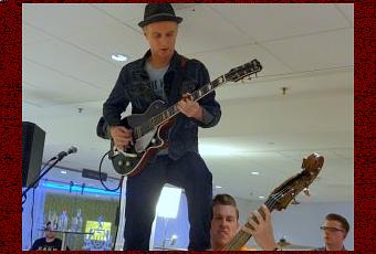 Du coup le guitariste grimpe sur la contrebasse et vient vérifier si les arroseuses d incendie de plafond sont conformes.