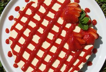 Préparer le coulis de fraises: Équeuter les fraises, les couper en 2 et les mettre dans le bol avec le sucre et cuire 10 mn/100°C/vitesse 2. Puis ajouter la menthe(facultatif) et mixer 1 mn/vitesse 10. Laisser refroidir avant de napper le cheesecake avec le coulis.