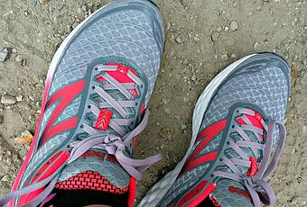 Au départ j'ai enfilé ma tenue New Balance de compét', un pantacourt Capri très confortable, un T-shirt super agréable et qui donne une sensation de sec, et mes Boracay.