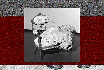 Un fauteuil, dont l'excroissance quasi organique, trône au côté de chaises peintes suspendues dans la toile : L'Aliment blanc de Robert Malaval entre en résonance avec la peinture Sans titre ( extractions) de Bertrand Segonzac ; véritable métaphore de l'encombrement de la vie quotidienne, de l'économie de surproduction.