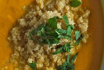 J’ai adoré cette recette, elle a tout ce que je peux aimer : des légumes et des épices, le quinoa qui apporte une texture géniale à la soupe et la rend consistante, ce qui me permet te tenir jusqu’au repas suivant sans avoir envie de grignoter. La menthe apporte de la fraicheur.