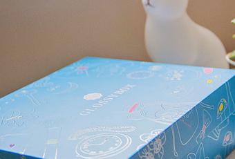 Je suis bien restée cinq minutes devant la box à la regarder, elle est tellement belle, avec tous ces dessins qui rappelle ce roman: les montres à goussets, les lapins, les boissons "Drink Me" . GlossyBox a bien soigné le design de sa box et elle est déjà en décoration dans ma chambre!