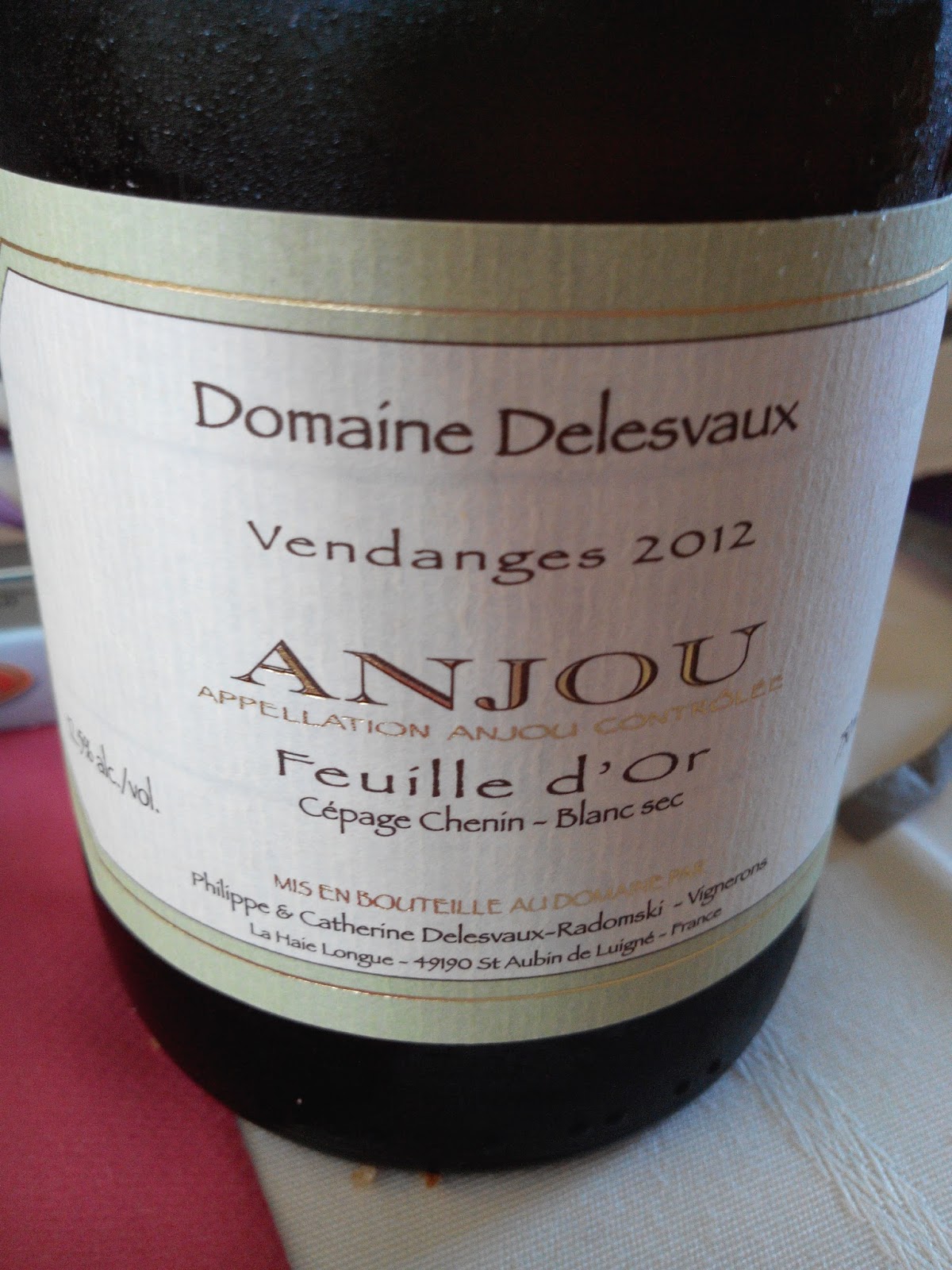 En blanc, j'avais choisi un Anjou blanc, Feuille d'Or 2012, Philippe Delesvaux : magnifique tension florale, un substrat minéral intense et cristallin sur une base de maturité juste. Très belle finale salivante. Grand classique mais quelle classe. Excellent