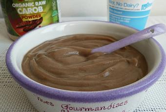 Ce dessert est très satiétant.... d'une part, grâce à sa richesse en protéines.... et d'autre part, grâce à sa richesse en fibres avec la caroube qui en contient 41% et le yaourt nature 3%.