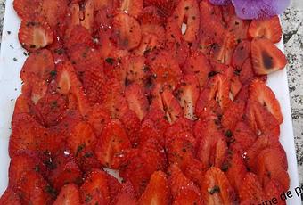 Carpaccio de fraise, basilic et vinaigre balsamique