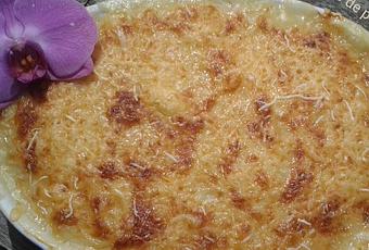Ingrédients pour 4 personnes : - 400g de courgettes - 600g de pomme de terre - 400g de lait de riz ou autres - 50g de margarine végétal - Sel et poivre à votre convenance - 1oignon - 600g de poulet - 2 cuillères à soupe de chapelure sans gluten ou Gruyère râpé - 20g de persil - 30g de margarine végétal Préparation : 1- Éplucher et couper les courgettes et pommes de terre en morceaux de 3 à 4 cm. Pour les courgettes vous pouvez garder la peau, mais ça fera une couleur verte et ça risque de moins passer auprès des enfants. 2- Dans le bol mettre le fouet, les légumes, le lait de riz, le sel et le poivre chauffer 24min/sens inverse/100°/ mijotage. En ôtant le gobelet. 3- A la sonnerie mettre la margarine et mixer 20sec/vit4. Réserver dans un saladier. Préchauffer le four à 220° 1- Éplucher et coupez l'oignon en deux dans le bol avec la margarine et chauffer 4min/90°/vit4 2- Ajouter la viande en morceaux, le persil, le poivre et mixer 15sec/vit7. 3- Verser dans un plat à gratin. 4- Recouvrir de la purée réservée. 5- Parsemer de chapelure ou de gruyère et enfourner 15 à 20 minutes à 220°. Pour éviter que ça grille le dessus du gratin quand c'est bien doré recouvrir d'un papier d'aluminium.