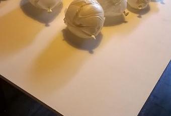 Il y a des jours où je me dis : « mes références culturelles sont très étranges, les liens que je fais quelque peu absurdes ». Ce fut le cas le vendredi 29 mai lors de la performance de Maren Ruben chez un couple d’emprunteurs de l’artothèque de la Ville de Strasbourg. Entrée dans la cuisine, la table est recouverte d’un panneau de bois blanc. Dessus, sont disposés des ballons gonflés blancs entourés par une matière étrange, couleur crème, translucide. Cette matière est dure et enserre ces ballons. Au-dessus de la table, d'autres ballons sont suspendus. Eux aussi sont comprimés par cette étrange matière qui tient de l'organique, de la peau.