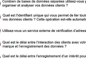 Experian Marketing Services nous fait un récapitulatif des 10 questions à se poser afin de gérer efficacement ses données. N’oubliez pas, une base de données « propre » vous permettra de gagner en performance sur vos différentes actions marketing et vous permettra donc par la suite d’avoir un retour sur investissement plus intéressant 😉