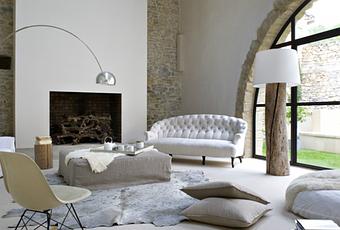 Je veux vivre là! Quand j'ai découvert les images de cet ancien moulin à huile rénové par l’architecte d'intérieur Marie-Laure Helmkampf, je suis tombée instantanément amoureuse du lieu et de l'atmosphère se dégageant de cet intérieur aux espaces intérieurs spectaculaires. Complètement redessiné par Marie-Laure, cet ancien moulin situé dans le sud de la France décline, sur fond de rénovation à l'ancienne, un style bohème chic que j'affectionne particulièrement, entre tradition et modernité, objets chinés et contemporains. La décoration est pensée comme une histoire qui décline couleurs neutres, tissus naturels et plus modernes mélangés avec du mobilier ancien et design et des accessoires choisis avec amour. J'aime particulièrement le magnifique bassin en pierre de 9 m de long dans le patio visible de toutes les pièces de la maison, l'effet cocon du blanc réchauffé par des teintes beiges et crème et des matières chaudes et ces superbes coussins ronds réalisés avec de vieux draps par Marie Laure et qui évoquent de gros galets... Alors, on déménage?