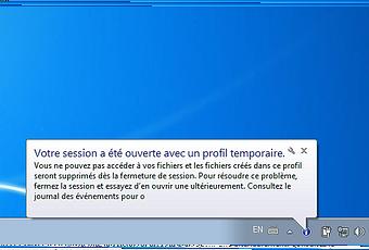" Votre profil utilisateur n'a pas été chargé correctement ! Votre session a été ouverte avec un profil temporaire. Les modifications effectuées à ce profil seront perdues lorsque vous vous déconnecterez. Consultez le journal des événements pour plus d'informations ou contactez votre administrateur ".Le compte (ou profil) temporaire se crée chaque fois qu'on ouvre la session de l'utilisateur. Tout changement apporté dans le profil n'est jamais enregistré. Le problème provient d'une sauvegarde de l'ancien compte dans la base de registre de Windows.