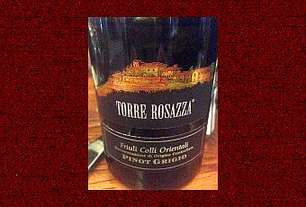 Vin 1 : Tore Rosazza 2006 Pinot Grigio : Nez floral pointe abricot , note peche de vigne sur fond amane. Bouche ronde grasse, un peu trop souple à mon gout, sur la peche de vigne, le fruit mûr. La finale est souple, ronde, avec une persistance honnête maus pas très complexe. AB 14,5 (86)