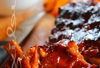 5)À cuisson indirecte, cuire les côtes marinées 20 à 30 minutes sur le barbecue à feu moyen, et les badigeonner régulièrement de sauce BBQ. Servir.