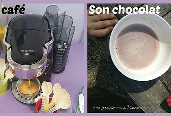 La Tassimo propose des capsules aussi bien de thés, de cafés que de chocolat. La version chocolat Cadburry a pas mal de succés auprès de ma deuz (l'amatrice de chocolat donc), ma grande a bien aimé le thé, et pour moi le café est parfait (long court, doux plus fort, tu choisis en fonction de tes envies). Pour cette machine, 2 suprises pour moi : le thé n'a pas le goût de chocolat même si on vient juste d'en faire un, la machine lit les codes barres du Tdics pour savoir quelle quantité d'eau mettre !