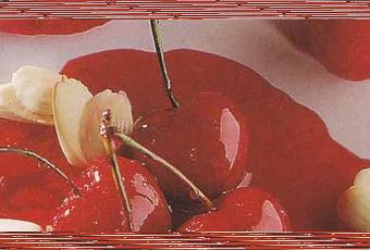 Fiche technique : Cerises en fine gelée d'hibiscus et amandes fraîches