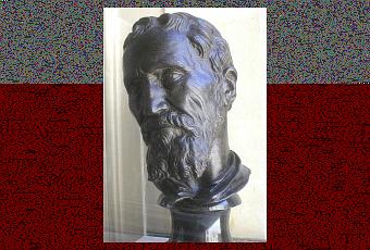 Vignette en haut à gauche : buste de Michel Ange par Daniele Da Volterra (XVIe)