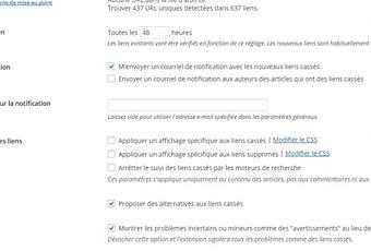 - Email de notification : cocher la case " M'envoyer un courriel de notification avec les nouveaux liens cassés "