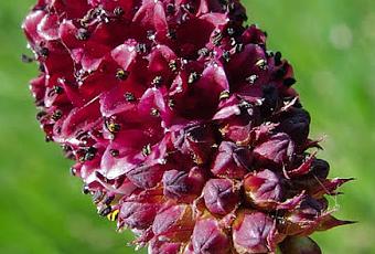 La Grande Pimprenelle, Pimprenelle officinale, Sanguisorbe (Sanguisorba officinalis) est une Rosacée dont les tépales sont pourpre foncé. En Lorraine, elle est principalement présente sur les grès et granites des Vosges mais que très rarement en plaine dans certaines prairies humides.