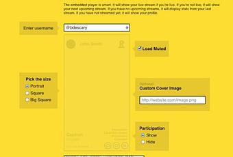 Les utilisateurs peuvent choisir parmi trois tailles, démarrer la vidéo en mode muet, télécharger une image de couverture et afficher ou non les commentaires. Une fois que le lecteur intégrable a été ajouté au site, il récupérera tous les directs.
