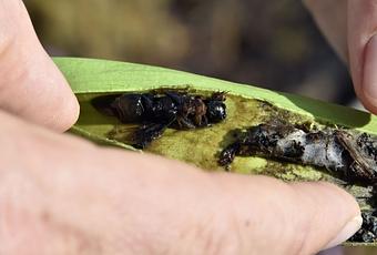En ouvrant au hasard l'une des feuilles au capuchon pourpre de la plante carnivore "Sarracenia", Romaric Perrocheau, directeur du Jardin des plantes, s'exclame :"Là, c'est du frelon asiatique ! Il est vraiment bien gros, légèrement orangé. La plante, on voit qu'elle n'arrive pas à digérer l'aile", décrit-il.Attiré par le nectar et les phéromones situés sur la lèvre de la plante, le frelon à pattes jaunes a plongé dans le long tube de la feuille, puis a "perdu pied et glissé dans le toboggan, et est resté piégé au fond où il a été mangé par des sucs digestifs", explique Romaric Perrocheau.