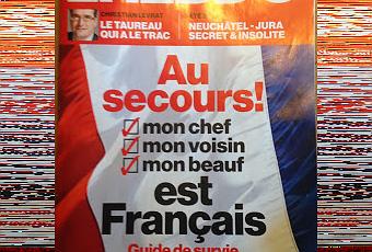- "L'Hebdo", titre plutôt progressiste, ne se serait pas permis de titrer "Au secours! Mon voisin (...) est un migrant (portugais ou espagnol, français ou allemand, équatorien ou albanais, maghrébin ou africain)". L'aurait-il fait qu'il se serait pris une volée de bois vert et sans doute une vague de procès, direct. Taper sur les Français, en revanche, ça joue (encore du Romand). Pourquoi? Sans doute parce que, sans trop le dire, on pense que les Français sont représentants d'une "grande puissance" (tout est relatif) qui peuvent encaisser, au même titre que les Etats-Uniens se fichent (a priori) d'être traînés en "une" dans la boue par un média Costaricain. C'est bien pour cela qu'on n'y cite que des exemples de Français supérieurs hiérarchiques, tout bien réfléchi