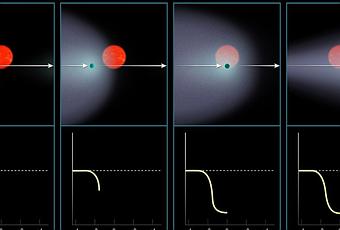 En étudiant le transit d’une Neptune-Chaude devant son étoile, une équipe de chercheurs a constaté la présence d’un grand nuage de gaz. Il s’agit probablement de son atmosphère qui s’effiloche sous l’action du rayonnement de son étoile toute proche.